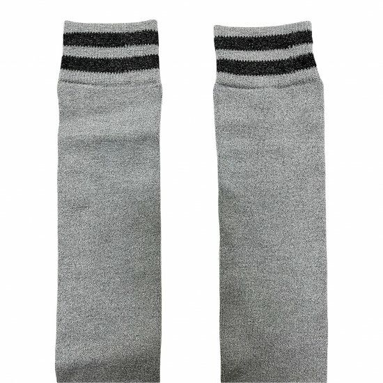 光沢のあるラメ糸を織り合わせたニーハイソックス。