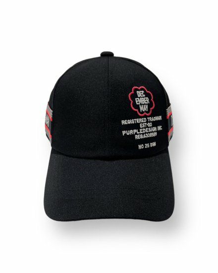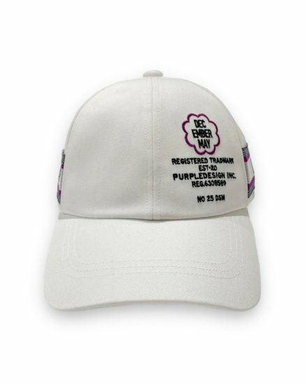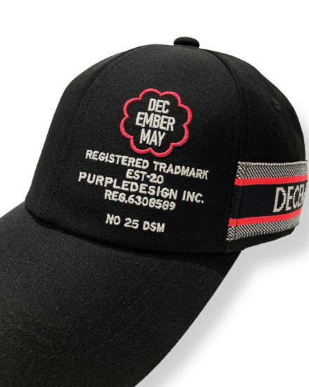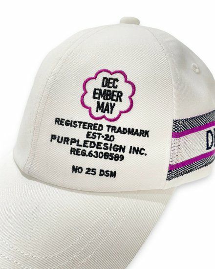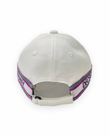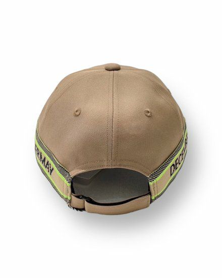 両サイドにジャガード機で編み上げたロゴニットテープを配した六方キャップ。