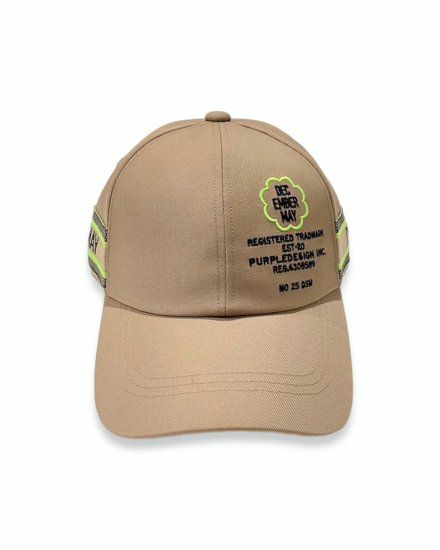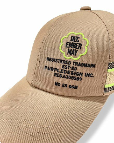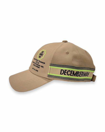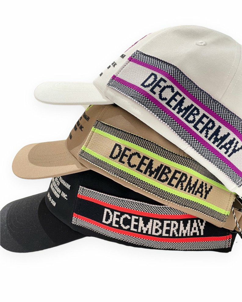 両サイドにジャガード機で編み上げたロゴニットテープを配した六方キャップ。