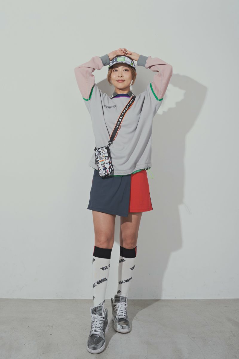 DECEMBERMAYらしいロゴモチーフを総柄にアレンジし、コーディネートのアクセントに。