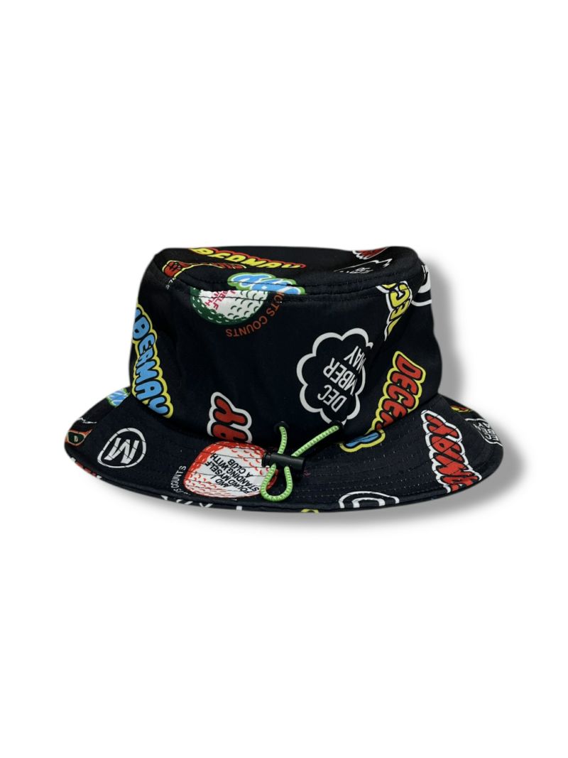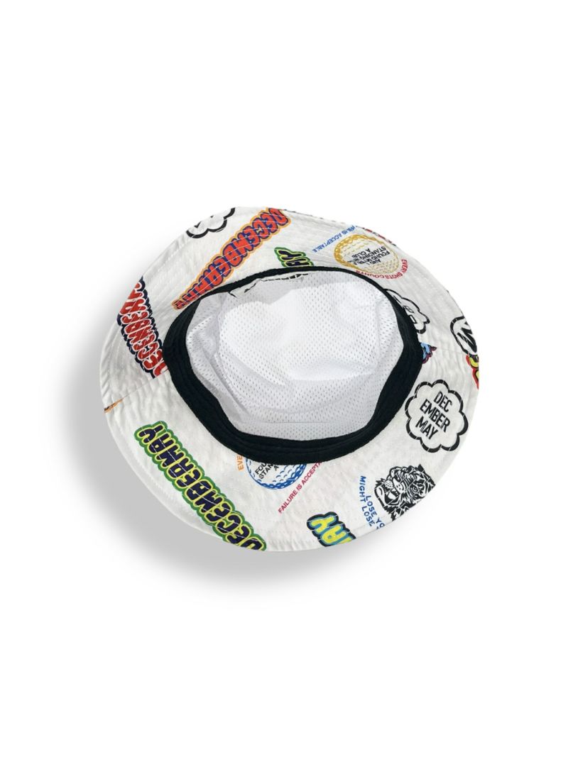 ロゴがふんだんに散りばめられたグラフィカルバケットハット。