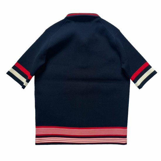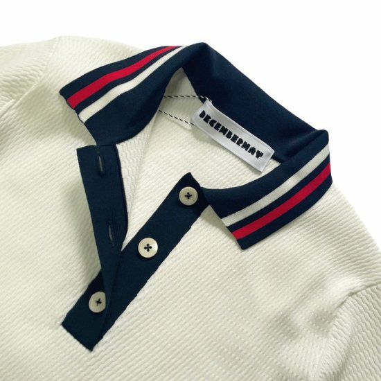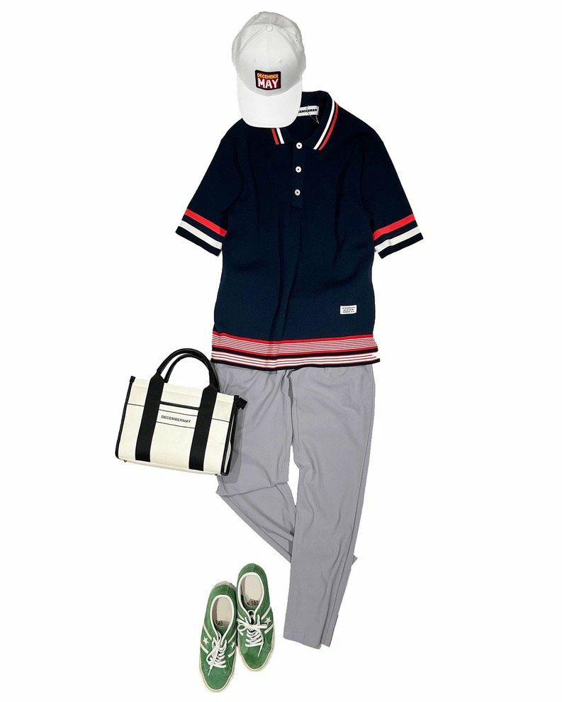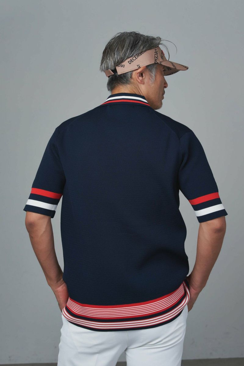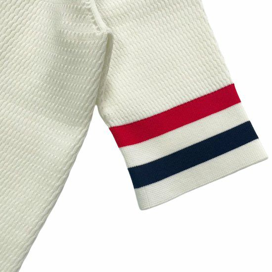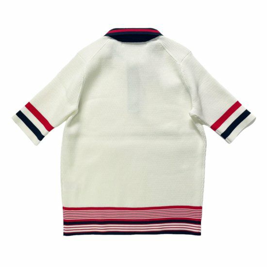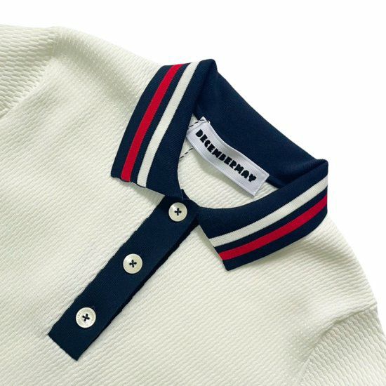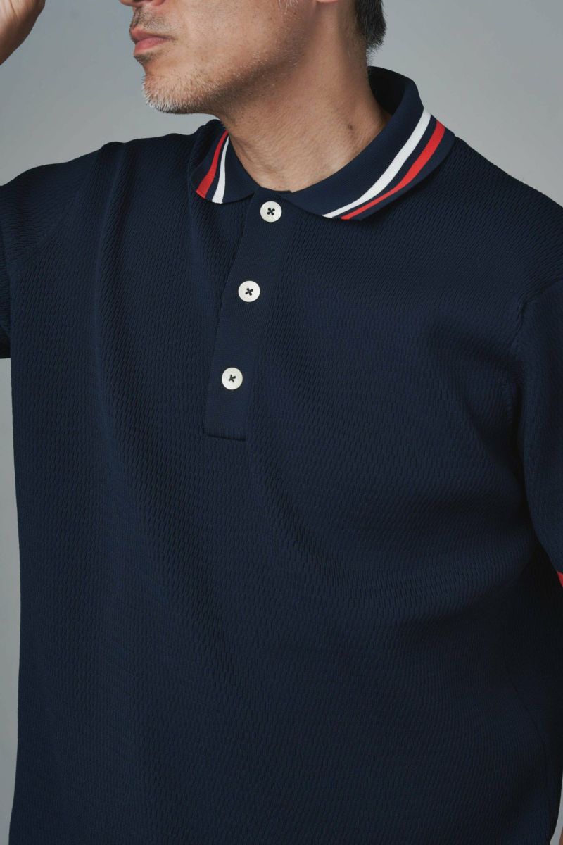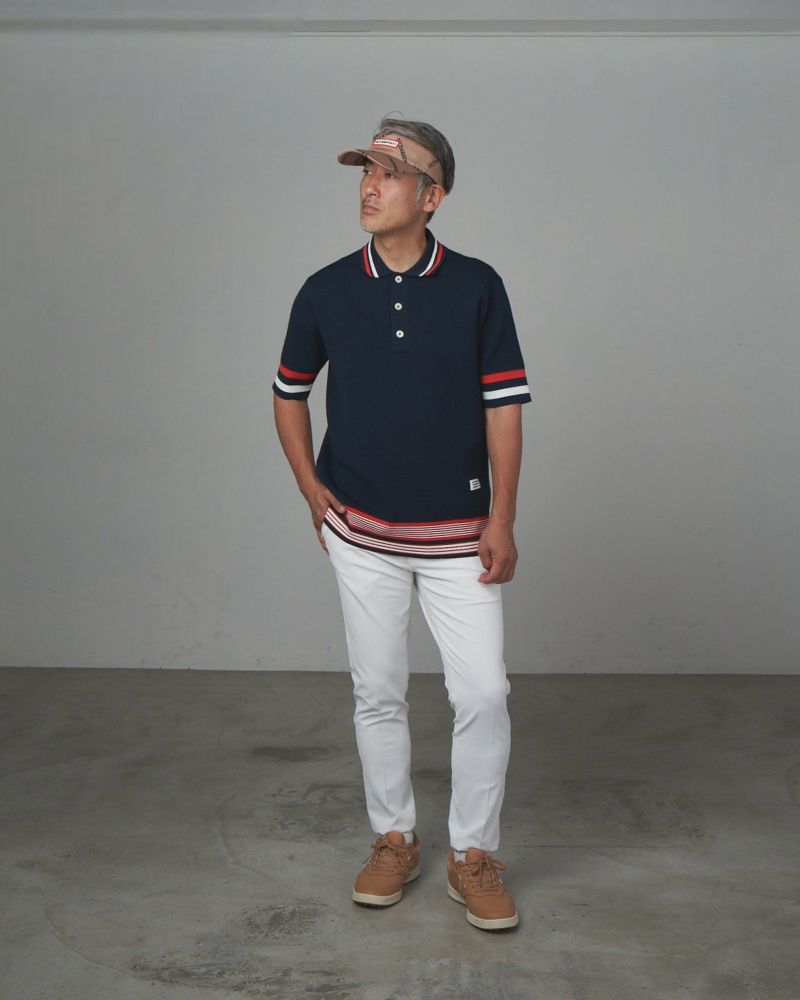 サーマル編みのサマーニットポロはカジュアルでありながら上品な雰囲気を醸し出します。