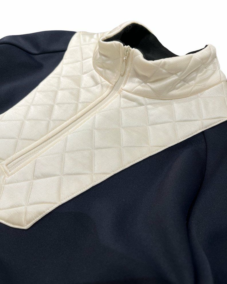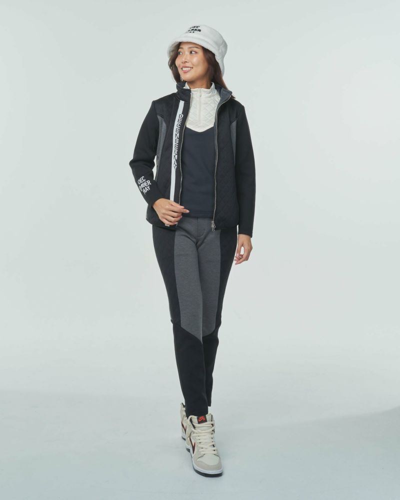本体A(キルティング部分): ポリエステル80%, コットン20% 本体B(身頃): ナイロン58%, ポリエステル37%, ポリウレタン5%