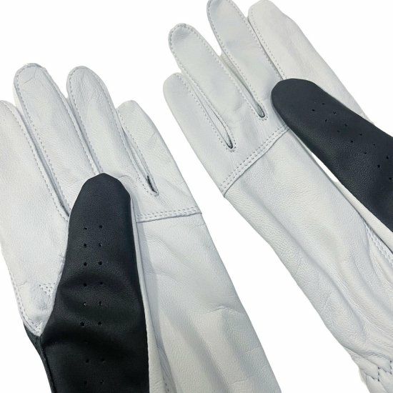 バイカラーデザインが特徴的なレザーグローブ。(両手)