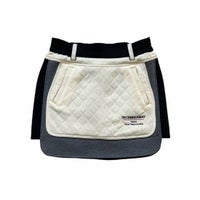 本体A(キルティング部分):ポリエステル100% 本体B(前後スカート): ポリエステル76%,レーヨン18%,ポリウレタン6% 別布(脇): ポリエステル68%,レーヨン27%,ポリウレタン5% 裏地 (インナーパンツ): ポリエステル100%