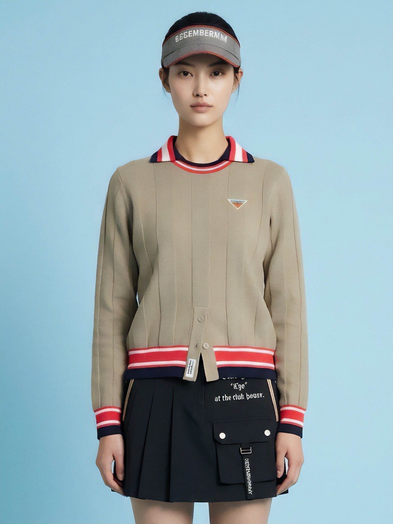 Calm stripe knit polo/ WOMEN