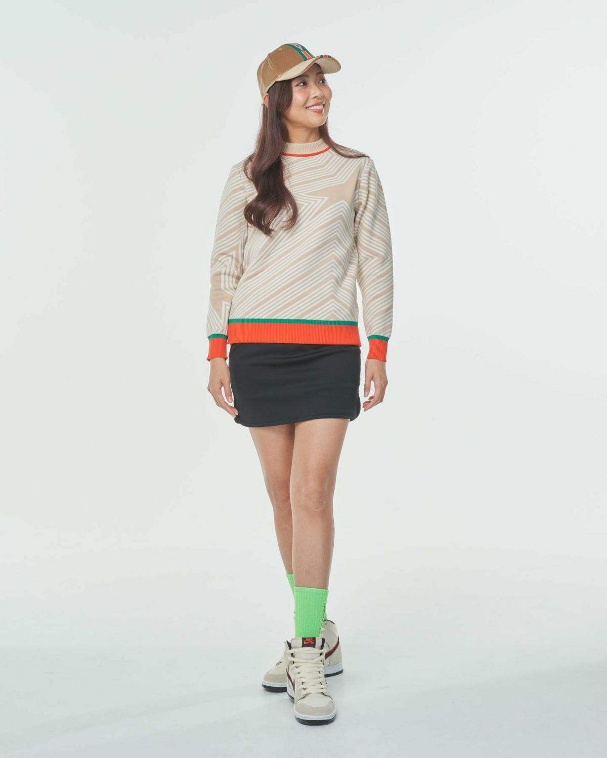 Stripe logo highneck knit / WOMAN