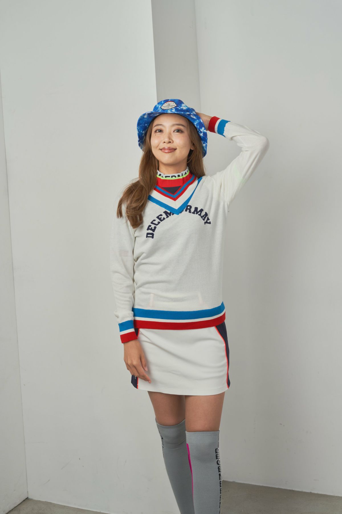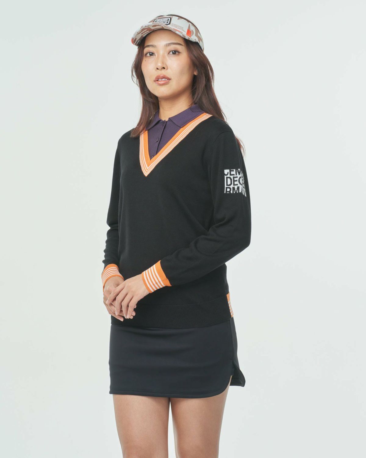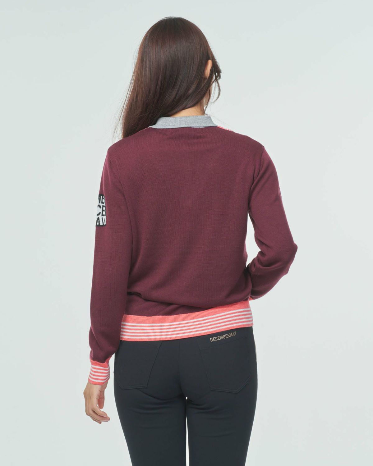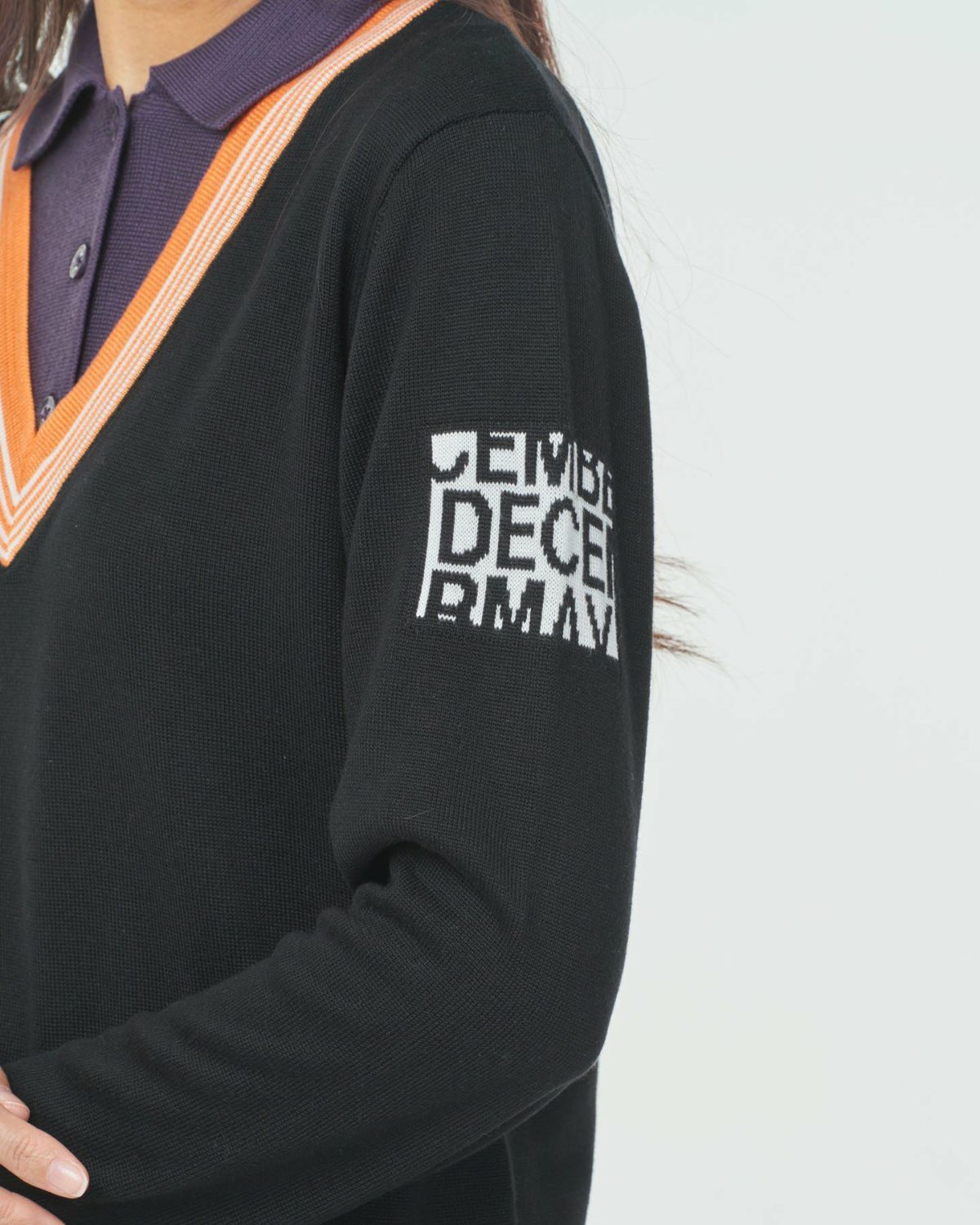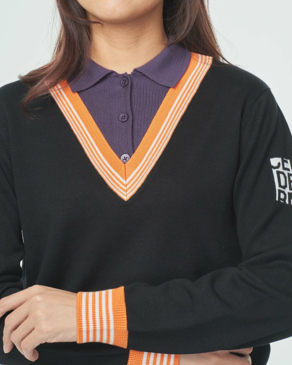 Vneck college logo knit / WOMAN